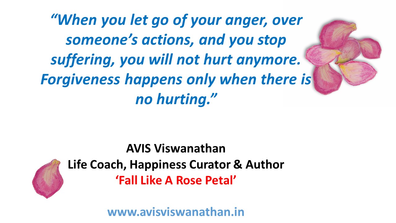 It is important to understand why you feel hurt when someone lets you down or causes you pain, injury and grief. Of course any form of pain – physical or emotional – will hurt. But a hurt festers in you because you allow it to. The truth is that you hurt only when you allow someone’s action to stay with you, in your thoughts. When you let go of your anger, of your suffering, while the source (or impact) of pain – as a person or event – may remain, you will not hurt anymore.