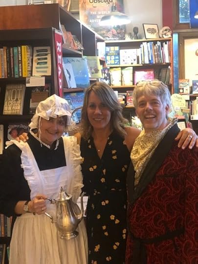 A House of Cards got off to a great start last Thursday at a book launch hosted by The Raven Book Store here in Lawrence, Kansas. The inimitable Mary Vensel White provided an extraordinary introduction that reminded me once again of her incredible facility with words, and Genelle was on hand to serve up her incomparable homemade buttercream-frosted minicupcakes and lemonade. Genelle and I opted to appear in attire appropriate to the Heiromancer Trilogy’s pseudo-Victorian setting to lend a bit of additional ambiance. It was a magical evening of great friends and “oh so refined” celebration.