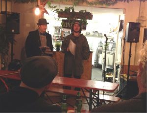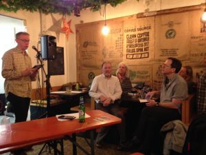Gareth Toms compered calmly and skilfully. Tom Sykes & Ollie Grunner gave us a bellicose dystopian Churchillian double act. Poems from Amanda Garrie and Richard Peirce.