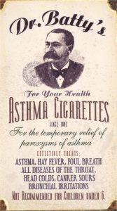 Dr Batty’s Asthma Cigarettes For the temporary relief of paroxysms. Not recommended for children under 6