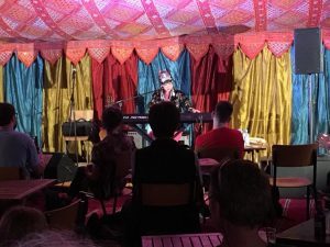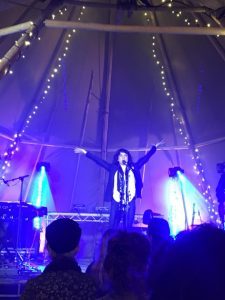 Our other musical highlights were the ethereal Bloom de Wilde and her later wilder incarnation with Sam and the Womp‘s romping Balkan tunes in the Globe Hall, which made our “heart go Bom-Bom”.