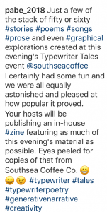 A record of our creative mayhem in Portsmouth Bookfest. Thanks for these photos to Olly Jackson @misanthropist_misdoer, Christine Lawrence, Amanda Garrie, Eilís Phillips and Andrew Larder.