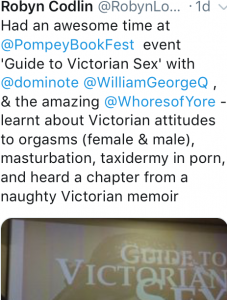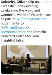 What lovely things the audience said about Guide to Victorian Sex, my scurrilous assembly in Portsmouth Bookfest, supported by CCI University of Portsmouth.