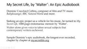 My Secret Life, erotic memoir, will be looked up by many of the audience, I imagine, and I only warn them to be cautious of doing so at work.