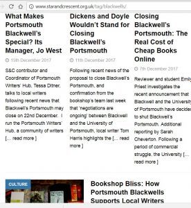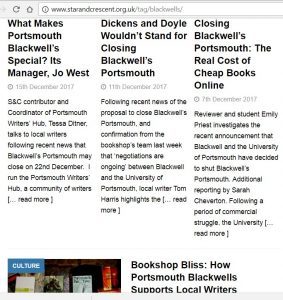 I run the Portsmouth Writers’ Hub, a community of writers on the south coast with over 600 members online. Recently, our Facebook group has been shocked by the news that Portsmouth’s Blackwell’s bookshop on Cambridge Road may be closing.