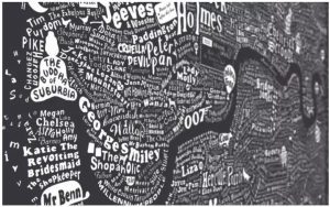 On this beautiful literary map of London, compiled by Dex, a London-based artist and graphic designer, and interior designer Anna Burles. They describe it as “an intricate type map of the capital teeming with infamous fictional characters from London’s literary past and present.”