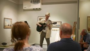 I began with a story sketching his walk from St James’ Hospital across town to paint the bomb damage during the war: this song fell out of the first draft, and I had a lot of help from writing buddy Jacqui Pack getting it into shape to perform at our New Theatre Royal and Portsmouth City Museum events.