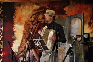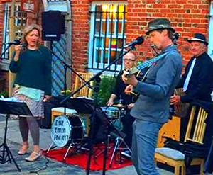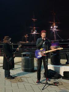 Desperate Beauty and Jay GroovaraThe launch also featured a few surprises. DarkFest musician-and-author-extraordinaire Will Sutton whipped up morale on a cold October night by engaging us all in a music hall-style singalong. Then, embodying the ‘Spirit of Portsea’, author Matt Wingett recounted the militarism and working men of the Dockyard, the ‘blood and the fighting’, the mothers and the molls, and other upheavals the town had seen in the last three centuries. On the Hard, with HMS Warrior (1860) as a spectral backdrop, Desperate Beauty and Jay Groovara played a mini-concert.