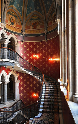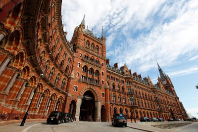 Here is St Pancras Station hotel in London designed in the 1850s by George Gilbert Scott, exterior and interior: