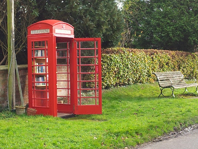 Here are some more pictures of phone boxes in English villages. They are so beloved that even in this age of mobile phones, when the need for them has long since past, people keep them as familiar and beautiful icons in the scenery. Sometimes they find an alternative use for them, such as a miniature lending library.