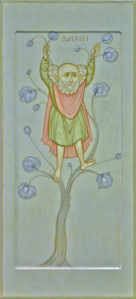 Below I show some examples of Beuronese art that I think are less successful than the examples above. The first is less formal and ends up looking like a good illustration for a children’s bible, but not so good for the liturgy, I suggest.
