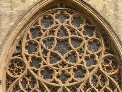 Or it can be more intimately and obviously bound with the form of the church, as it is in the medieval rose window. Here is a window dating from about 1500 in the cathedral at Amiens in France: