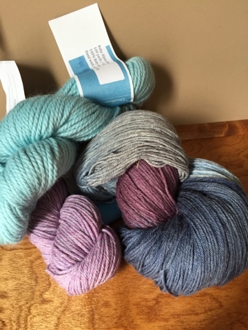 Last but not least in my sample pack is the Cloudborn Merino Alpaca Sport. 80% Superwash Merino and 20% Baby Alpaca. It's not a superwash yarn, even though the wool is superwash. The color I have has a heathered appearance - this is probably because the alpaca and the merino take up dye slightly differently. The alpaca will probably bloom with wear, so a complex stitch pattern may not show up well. But, these little RONA Wrist Cuffs (free pattern)? Divine.