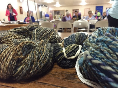I didn't spin this yarn. My lovely sister, Lisa, did, as I prepared to talk about spinning and socks to a bunch of spinners who are probably better spinners than I. Having the yarn there gave me a little more confidence. Thanks for all of your hard work, Lisa!!!!!