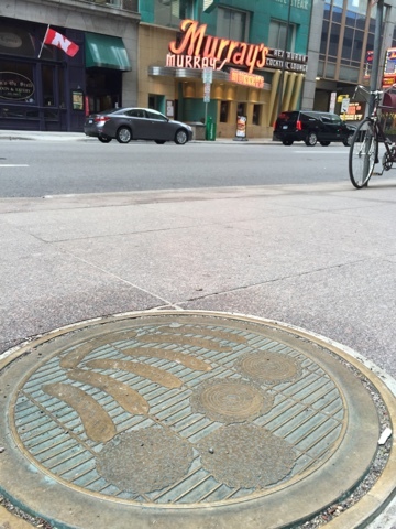 We have never eaten at Murray's (I hear it's great!), but I love that the access cover on the street in front of it is stamped to look like meat on a grill. Awesome!