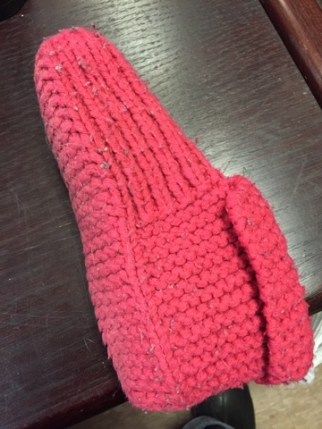 One of my students brought this in to my class. I deconstructed it for her and wrote up some instructions that I think will work. But, just in case, I thought I'd check and see if anyone out there knows the pattern? It's mostly garter stitch, with a little ribbing. It appears to have been cast on at the back of the heel and knit back and forth. Seams run along the back of the heel and the top of the foot.