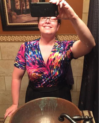 I've seen a lot of wrap dresses where the top is a solid color and the bottom is a print, but I like it this way, better.