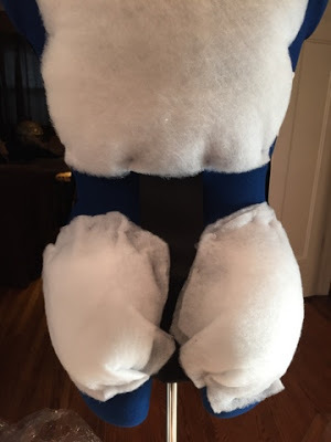 Then, it got a little weird. I made a booty for my dress form using layers of bonded quilt batting. Also, some back fluff, because, let's be honest, I have some.