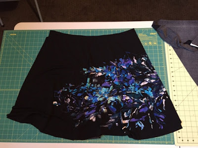 The print on top reminded me of Monet. There was only a little over a yard of it on the bolt, so I thought I'd try using it as the top of a dress. I paired it with a simple, matte black knit fabric.