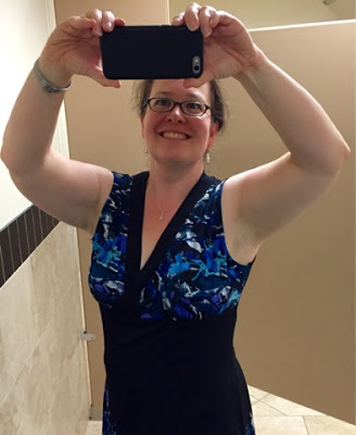 I cut out the largest size (a bust size of 40), which is a little small for me, but my fabric is closer to 33% stretch, not 25% stretch, so I figured I would be able to get away with it.
