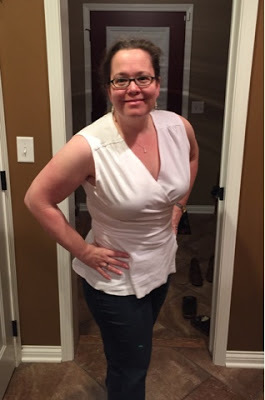 I'm very happy with the result. There is a little pulling at the underarm, but I think it's ok and I'd rather not add front darts on top of everything else. If I make it again, I'll substitute in armholes and sleeves from another pattern so that it can have t-shirt style sleeves. I may also straighten out the curved edges on the peplum, but I rather like them.