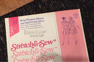 I also wanted to try this Wrap Peplum Blouse from Stretch & Sew. It's number 325. The pattern also includes a half-circle skirt with a waistband and, even though it doesn't crow about it, a wrap dress.