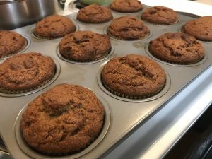 So, it’s dark outside, I have words to write, and a muffin to eat. Made them yesterday, and they are a winner. My fave Simply Recipes Banana Bread recipe, with 1 cup whole wheat flour and 1/2 cup white whole wheat flour, toasted pecans, diced dried figs, and three tablespoons spiced rum–the whole wheat flour takes up the extra liquid. Anyway, so good. Very moist, with a deep, rich autumn flavor.