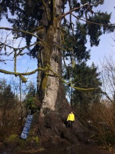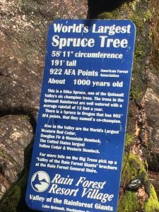 Just a short walk from the compound stands the World’s Largest Spruce Tree, which is even more impressive when you’re stumbling over its roots trying to get your footing so you can have your photo taken. There are a number of record-setting trees in the area, but the spruce is the one within easy walking distance. If I go back next year–and I want to go back–I’l try to build in extra time to see the others.