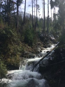 Most of the mornings were misty, as it rained most every day (early March on the Olympic Peninsula–go figure). But that made for good writing weather–I didn’t hit a high word count, but I did work through a rough chapter that had fought me for a while. So, when Saturday morning dawned sunny, I felt quite justified in taking a hike around the nearby woods.