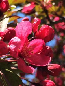 My favorite, the prairiefire, is more a shrub than a tree. It blooms later than the others, so that it’s at its peak when the others are fading. Its blossoms are deep magenta.