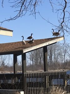 Canada geese live here the year ’round–there’s plenty of food in the local ponds and yup, some folks feed them.