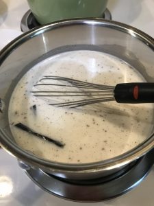 My only problem was a lack of vanilla beans. I solved that crisis by digging some of the pod pieces out of an older bottle of vanilla extract–I scraped out the seeds and added those to the milk mixture.