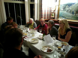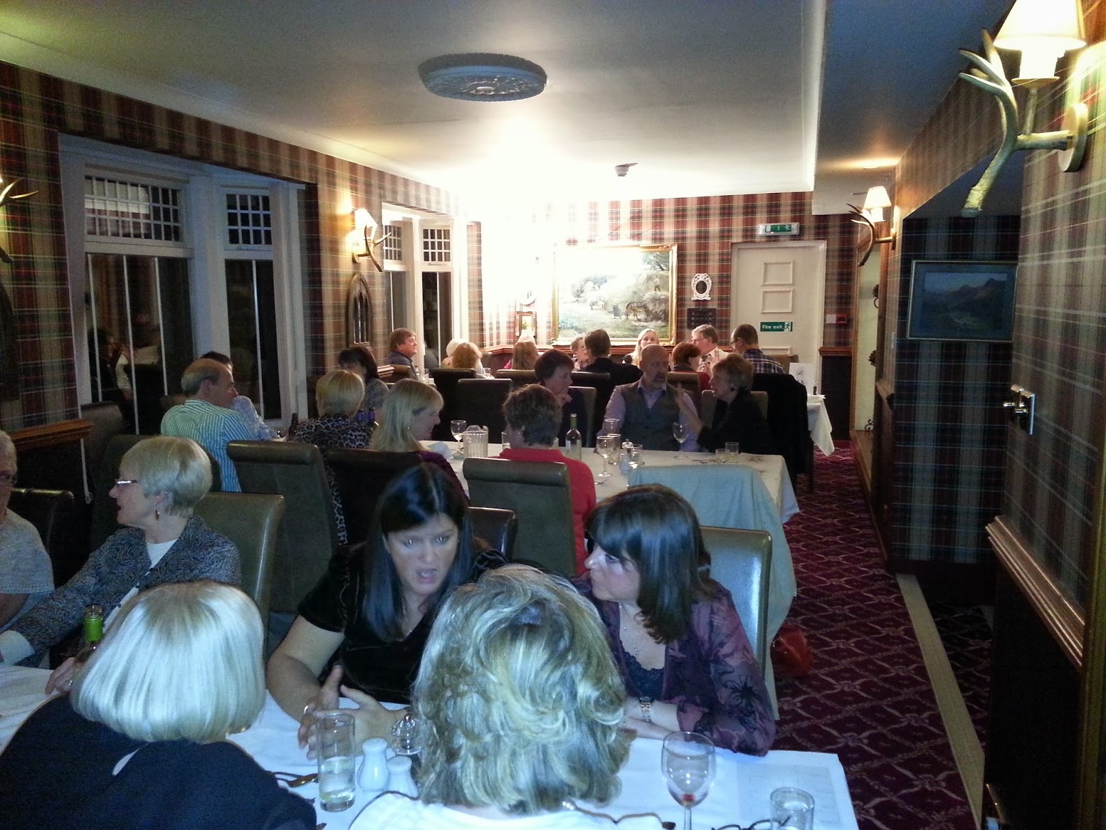 In the evening the mighty atom had tried to have all the writers on stage at the same time but physical injury and an oncoming storm reduced us to five. The audience were well oiled by this time, most of them having been to every single event. I did start off that event by saying that we were happy to be 'buzzed for repetition'. The hotel we stayed in was a fairly typical highland hotel trying to do its best in the economic downturn. Fabulous open fires, stag antlers, etc. I always like hotels where you get the sensation of either walking up or down hill as the floors are so uneven. The breakfast menu was magnificent, just reading it took about an hour and everything liberally dressed with smoked salmon.
