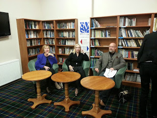 This year the mighty atom, all four feet eight of her, decided to run her small crime festival. Dark Nights. No wonder she has been nominated for Book Shop Manager Of The Year. Two of the main authors called off at the last minute and one of the stand-ins did a fantastic talk on the highland whisky wars and just listening to that gave me plots for the next three books! And next week's blog! He did his talk in a top hat with a walking cane.