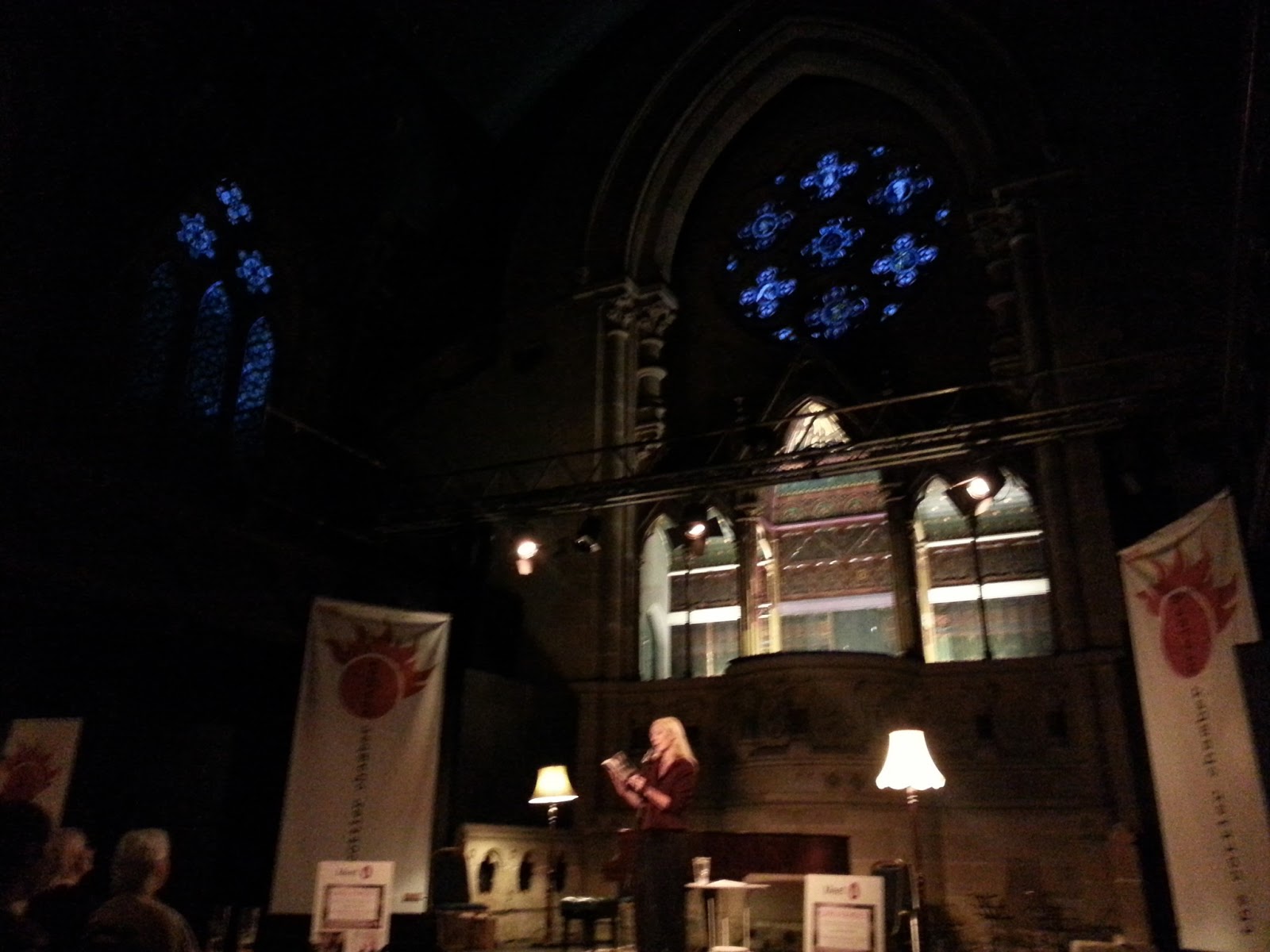 And I was trying my hand - my single hand - at a kind of stand up type gig at Cottiers Theatre as part of the West End Festival. It wasn't a big audience. Indeed, I am sure that only four of them were my audience, most of them were just sitting enjoying their drinks after the folk band had finished, soaking up the ambiance when this mad blonde climbed up on the stage and started talking about serial killing...But they stayed and listened, and laughed and bought books.