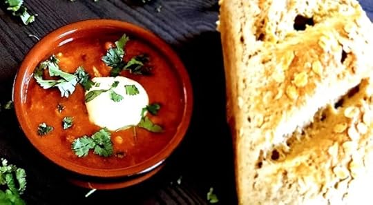 Wash and soak the lentils for 1 hr. before starting to cook.Add the soaked lentils, salt, cumin, pepper, 1/2 of chopped onions and garlic, cilantro with 3 cups of water and pressure cook it for 3 whistles. If using a pot, let it simmer with the lid closed until the lentils are soft and mushy.In a pan, add the ghee, and heat to medium. Once the pan is hot, add a pinch of whole cumin seeds, Serrano or green peppers, the remaining chopped onions, garlic and let it cook till the onions are transparent.Add the tomato paste with a couple of teaspoons of water and once its heated through, add the chicken stock and red beans. Let this come to a boil and then add paprika and salt to taste.At this stage, add the cooked mashed lentils and let the soup simmer on low for 20 minutes.Sprinkle with the remaining cilantro, a dollop of sour cream and serve it hot with the Oat bread.Optionally, you can serve this on rice or a side of pita bread. It’s not just delicious, but also simple and hearty. And NO… no matter how good it tastes, you cannot ask people to give up their rights in return for your soup. LOL!