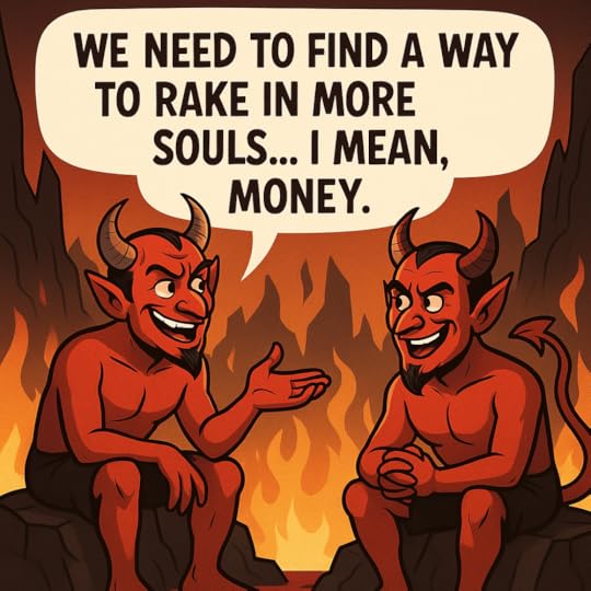 “Easy,” said the first devil. “We charge a membership fee. Not enough to make them angry, but enough to make them feel like they’re part of some exclusive club. No one wants to feel left out, especially when their pride is on the line.”