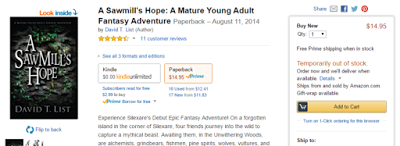 In addition to printing, IngramSpark also distributes my books to numerous online stores, most importantly Amazon.com. Unfortunately A Sawmill's Hope, paperback, is not currently available through Amazon.