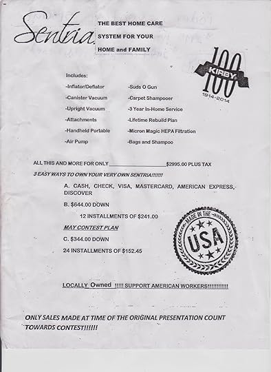Now, if an upstanding, door-to-door, Kirby Salesperson reads this and gets ruffled at my criminal libel about the pinnacle of vacuum sellers that is Kirby, know that my only experience with your company sucked, and not like it should have.