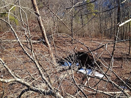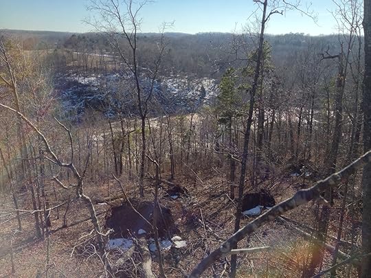 But lying on their side, these Five trees were much easier to climb. And once I'd climbed one I discovered a view of the forest I'd never experienced. I could see for miles. Down the massive hill, across the Broad River, up the slopes on the far side that still wore snow and out over a pasture I never even knew was there.