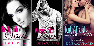 Jude Ouvrard is an author who writes from the heart, and reads with passion and devotion. Jude enjoys stories of drama, true love, tattoos, and everything in between. While writing is her therapy, reading is her solace. Life doesn't get better than books and chocolate, and maybe a little bit of shopping.