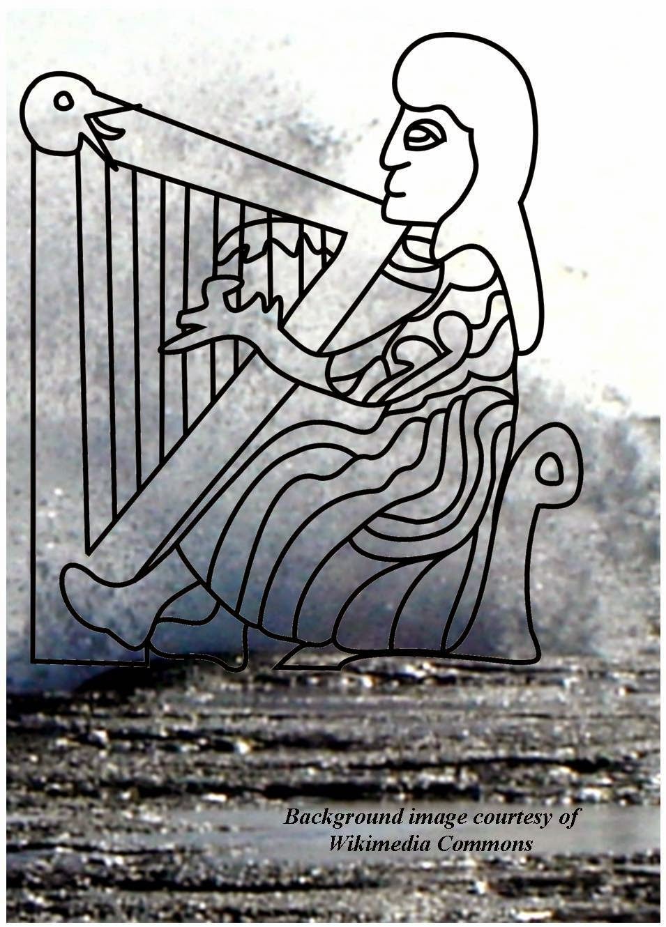 The peels from Eileann’s apple had fallen into two piles. One pile suggested the triangular outline of a harp. The other spelled the letter A. Eileann touched the peel forming the sound board of the harp-shaped pile. The peel sprung under her fingernail to make a sideways A.