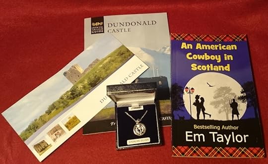 Sterling Silver Scottish Thistle necklace bought from Dundonald Castle Visitors Centre. Signed paperback of An American Cowboy in Scotland Dundonald Castle guidebook and postcard.Enter the rafflecopter giveaway here!