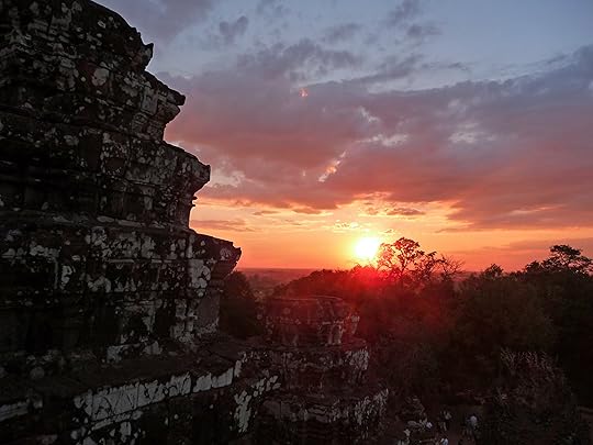 Similarly, we climbed Phnom Bakheng, a mountain-like active Buddhist temple, late one afternoon to watch the sun set over Angkor Wat. We were quite early, but the masses were ahead of us this time. By the time we reached the top, it was difficult to find a few feet of stone to perch ourselves and our cameras. Thankfully, the vibe here was different from the dawn event and people maintained a quiet reverence due to the presence of the monks. Watching the sky turn orange, just like the robes they wore, was a religious experience—one I will never forget.
