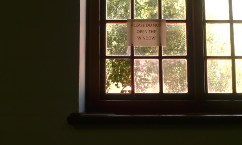 Sign at a library window. Sometimes you just have to look closer and the outside world becomes clearer. Sometimes literally.