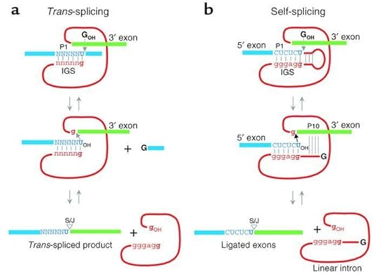 "RNA is the nucleic acid molecule that preceded the better known nucleic acid carrier of inheritable traits called DNA in evolution. Certain viruses, proto-life forms, do not have a DNA but an RNA molecule instead. RNA is also present as an essential constituent in the cells of every life form. Nucleic acids are like a code with four symbols, which are present in the form of two pairs of complementary molecular motifs called nucleotides. They encode proteins. The code can be read by other nucleic acids that dock to the code if they have the complementary code. This can then trigger the assembly of proteins from amino acids. It can also result in the further assembly of a complementary nucleic acid strand, which is a form of copying the code. So basically nucleic acids function as a kind of cellular computer, which takes other nucleic acid molecules as input and provides proteins or nucleic acids as output.Certain types of RNA can fold back on themselves and have stretches of their nucleotides pair, so that you get a kind of lariat form. Where did I see this before? It reminds me of the alchemical symbol of the Ouroboros, the snake that bites its own tail and thereby gets to know itself. An ancient symbol of the self-reflective nature of consciousness.Now certain RNA molecules can process i.e. modify themselves when they interact with themselves. Often this results in cutting of a part of itself (self-splicing), but it can also result in extending itself."