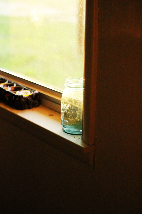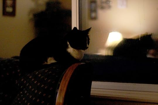 I would stand in the kitchen looking at her light, the chair backs at the table standing before it, black slits against the glow.