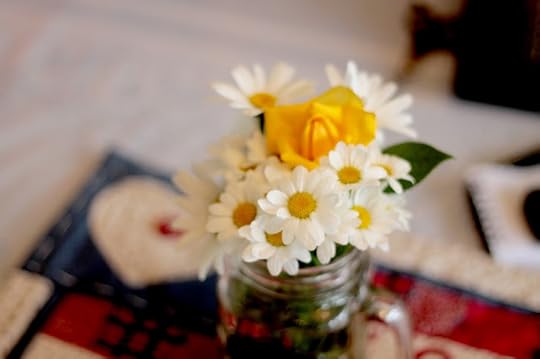 I opened one eye, the other buried against my pillow. Warm sun streamed past my curtains and onto my back. I looked up at my door, opened a crack. Dad sat at the table, reading The Hobbit and drinking his coffee.