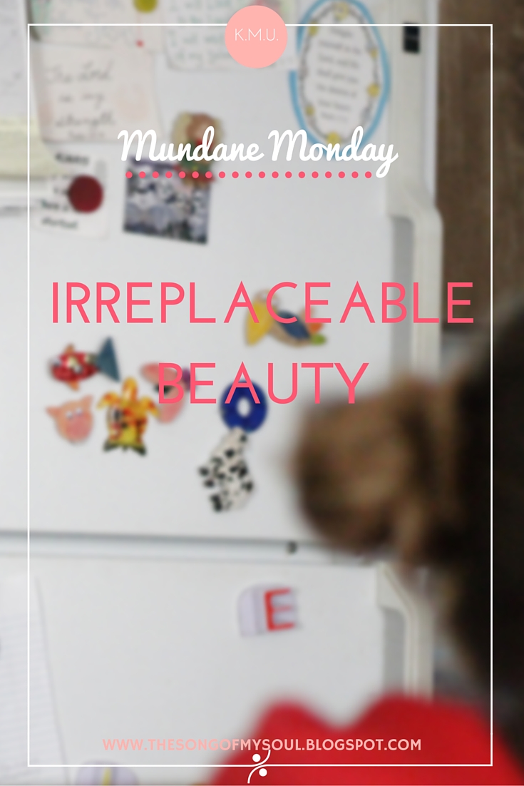 Light on refrigerators, marked up calendars and kid-made magnets, there, unashamed and lovely—irreplaceable gift, unrepeatable beauty.