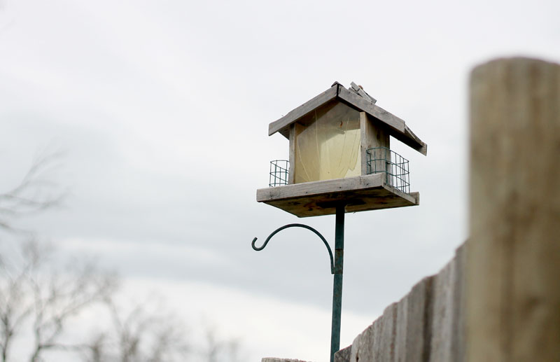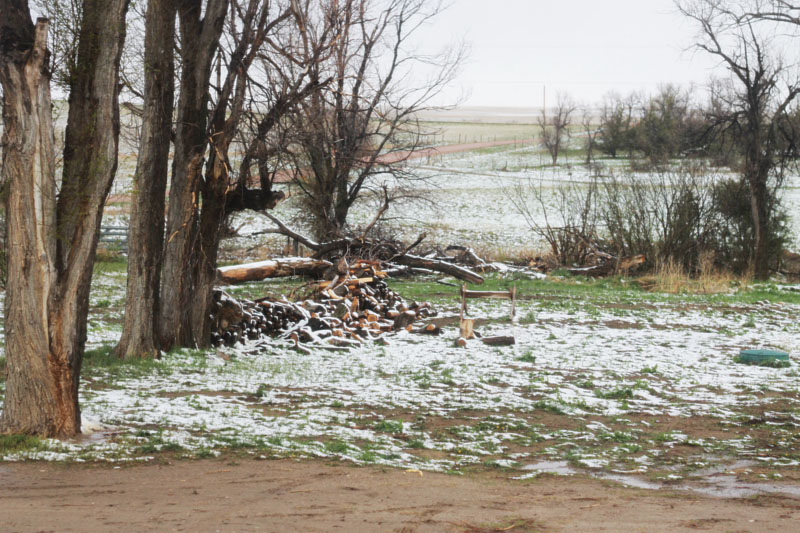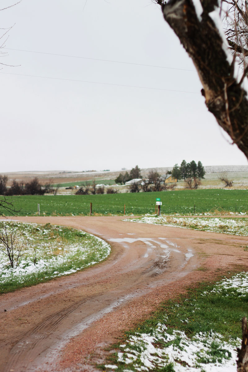 All the green tufts of grass are now tufts of white all over the backyard. But there are puddles still, and trails of water from all the rain.